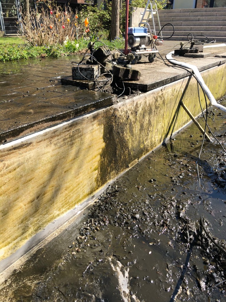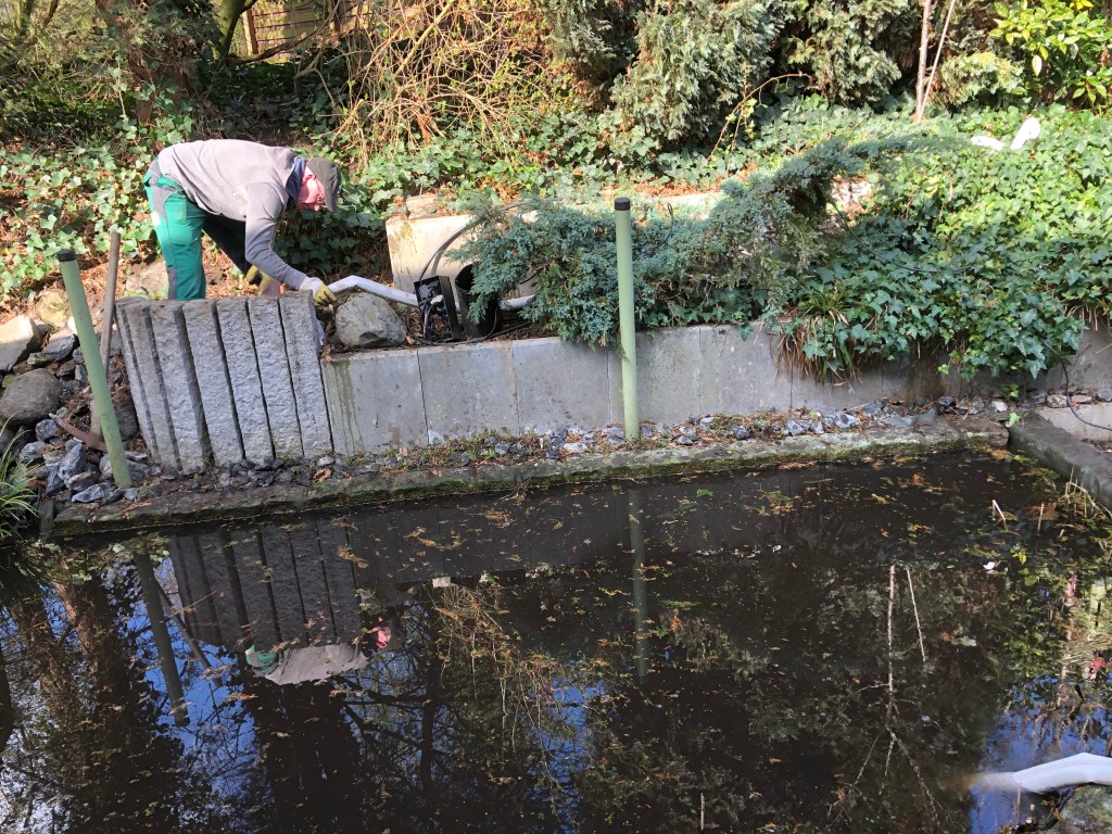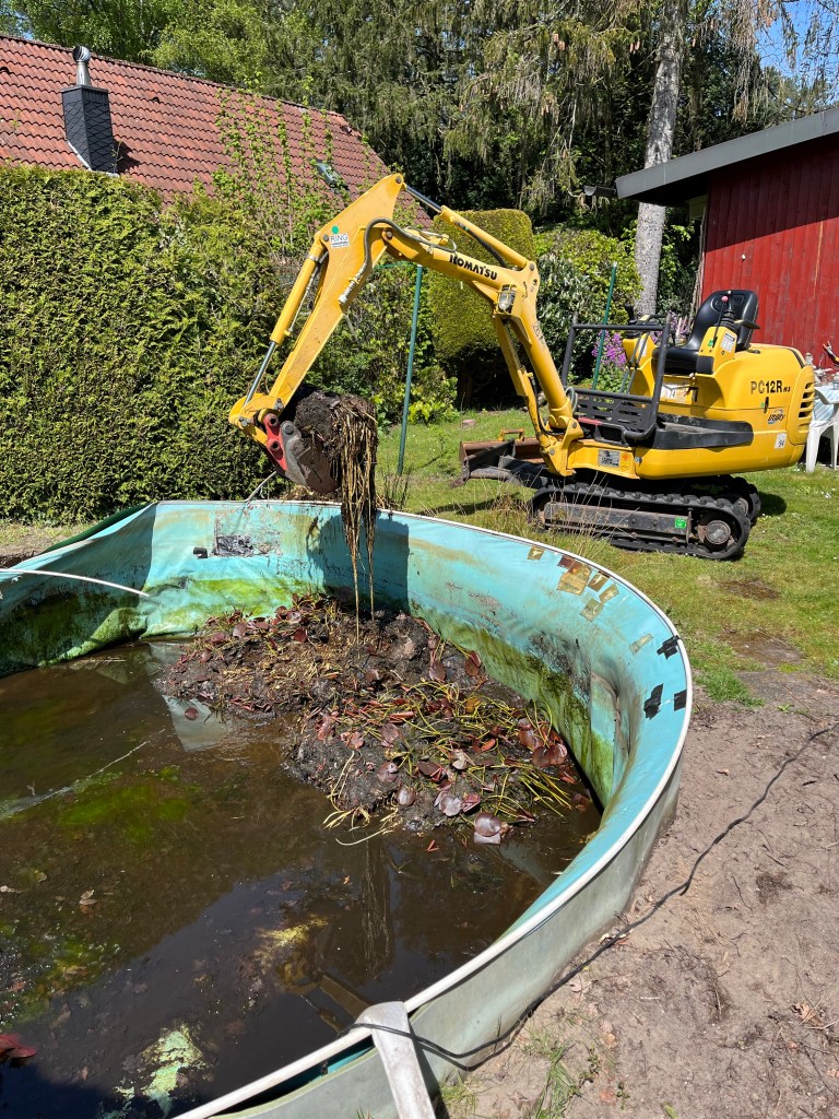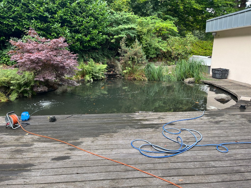 Rückbau eines defekten Filtersystems mit Teichreinigung