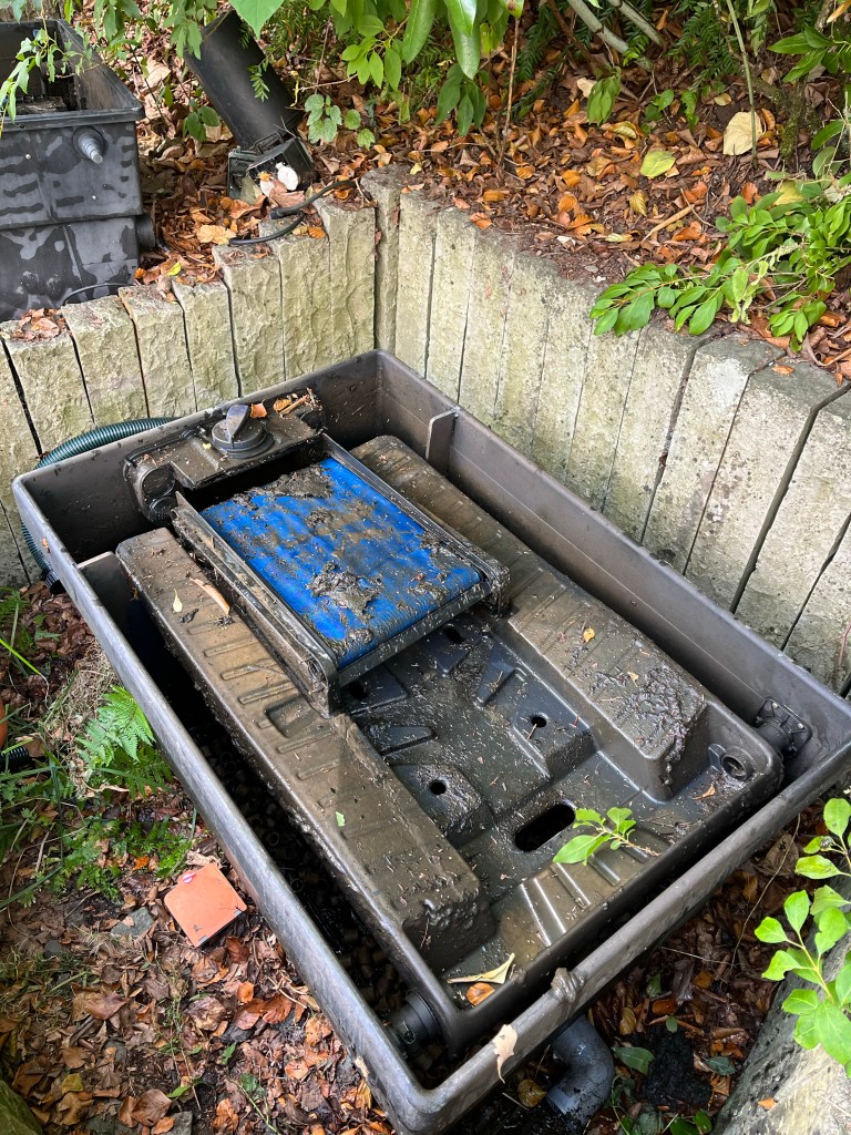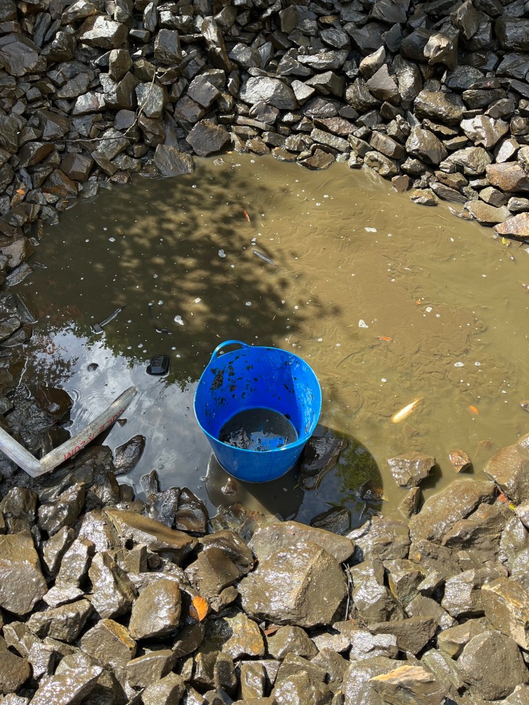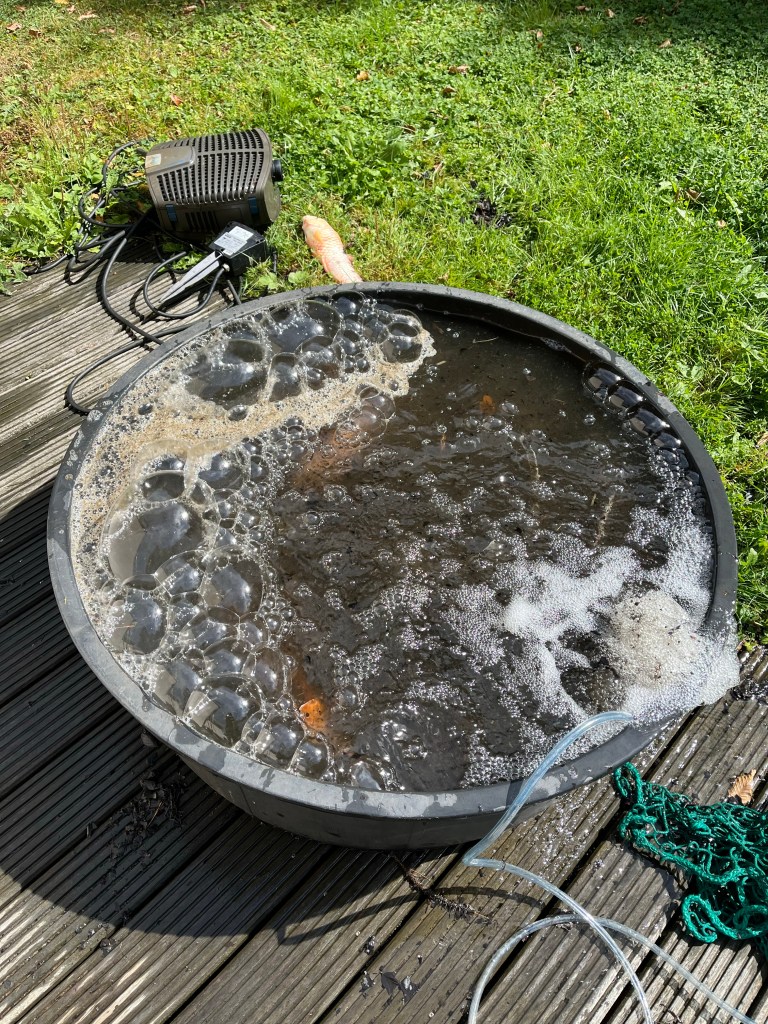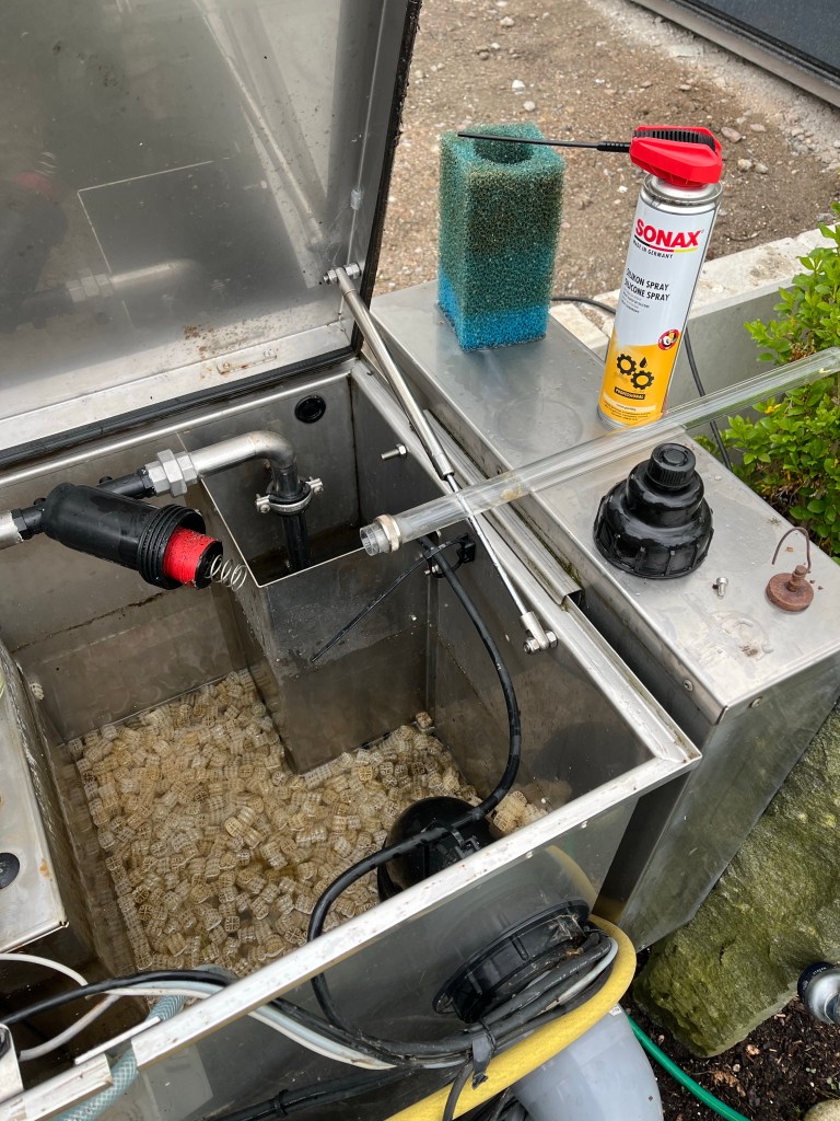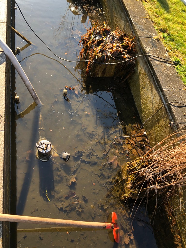 Rückbau eines defekten Filtersystems mit Teichreinigung